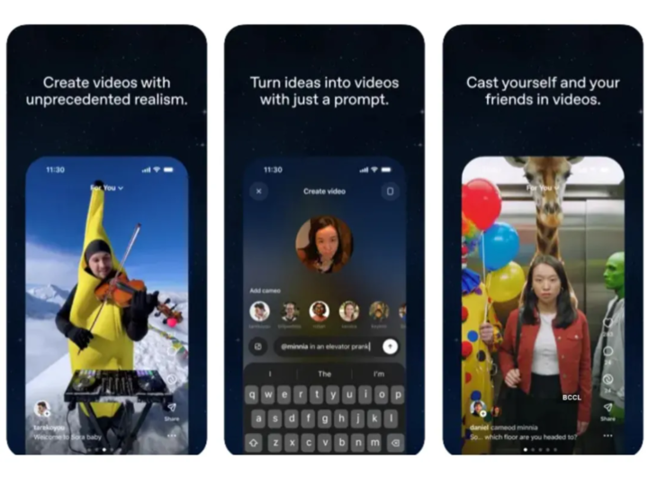 它不是一个简单的视频生成工具。OpenAI 给它设计了社交 feed 流,用户可以用 AI 生成视频、发布、互相观看。